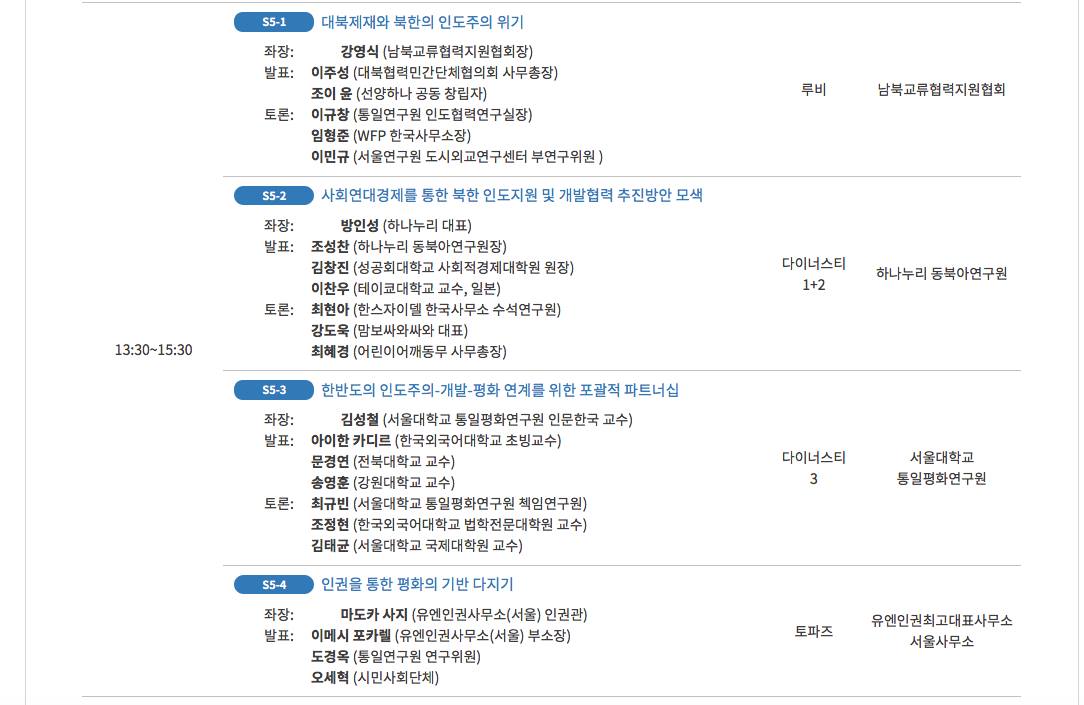 통일부 한반도 국제평화포럼 둘째날(9월 8일) 하나누리 동북아연구원이 담당하는 '사회연대경제를 통한 북한 인도지원 및 개발협력 추진방안 모색' 세션에 토론자로 참가합니다. 🙂