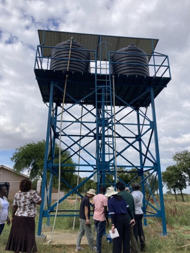 왼쪽 사진은 맨 위의 태양광 패널을 얹어 전기 에너지로 수원에 설치된 수중 펌프를 이용해 물을 끌어 올리는 일반적인 지역 기반 solar powered water system 입니다. 이러한 시설은 우기 때 일조량이 충분하지 않기에 이용이 제한적입니다. 특히, 기후변화로 불규칙적인 날씨 때문에 이슈가 되기도 합니다.