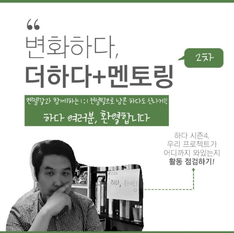 300만원의 기적 🙂 KCOC 하다 프로젝에 참여하고 있는 5개 팀과 심사부터 1,2차 멘토링까지 함께 할 수 있었던 것은 엄청난 특권입니다. 🙂 요리와 멘토링을 통해 학교 밖 청소년의 건강한 성장을 돕는 #한빛, 사회혁신 분야에 일하는 이들의 소소한 이야기를 편지처럼 들려주는 잡지을 만드는 #겸사겸작, 네팔 여아동과 여성의 위생용품 접근성 향상을 돕는 #젠디, 아프리카 인식개선과 세계시민학교 컨텐츠를 만드는 아프리카인사이트의 #우분투 그리고 베트남 특수교사의 역량강화를 통해 장애아동의 성장을 돕고자 하는 #변화를누리봄 까지~~ 300만원으로 우리가 겪고 있는 문제를 해결해 가는 기적을 보여주심에 존경과 감사를 보내 드립니다.🙂 끝까지 응원드리겠습니다! 함께 부셔버리자구요!! 맘보싸와싸와🔥🔥🔥🔥