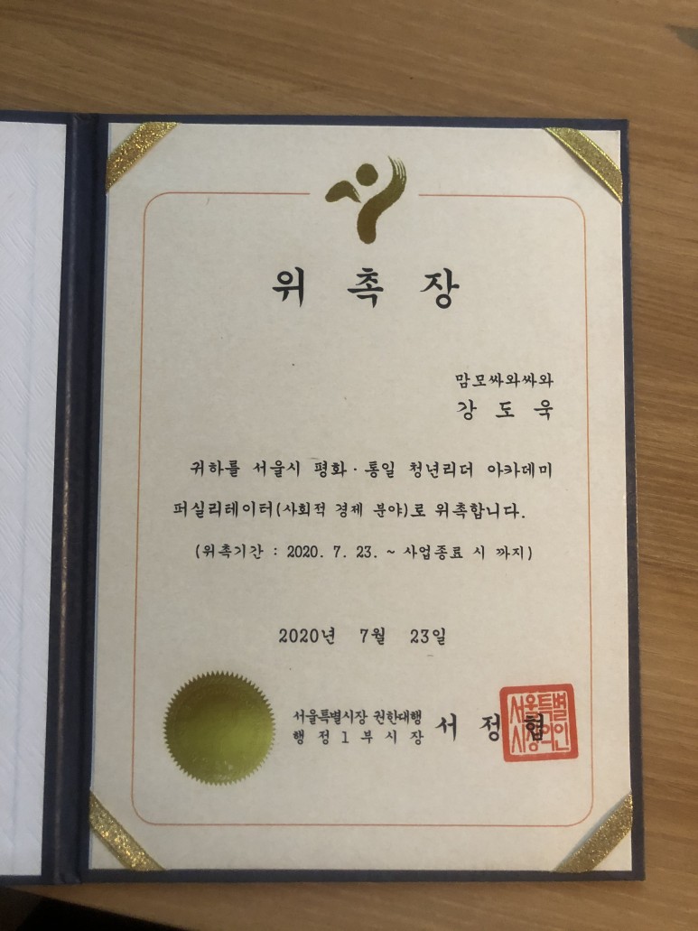 서울시 남북협력 청년리더 '사회적경제' 분과를 맡아 멘토로 3개월을 활동하였습니다.